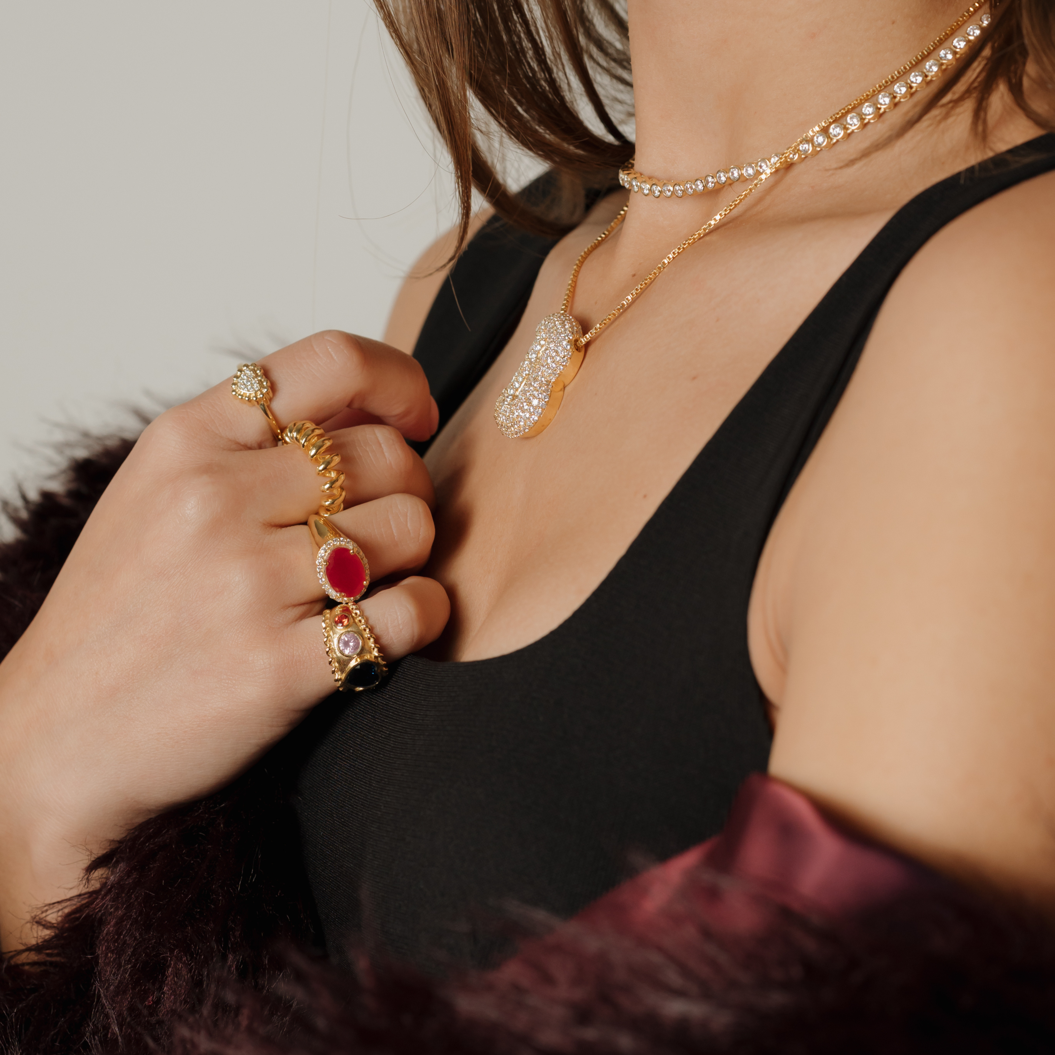 Our jewels are crafted from real 925 sterling silver and finished with a 14K gold plating for a lasting, luxurious shine.