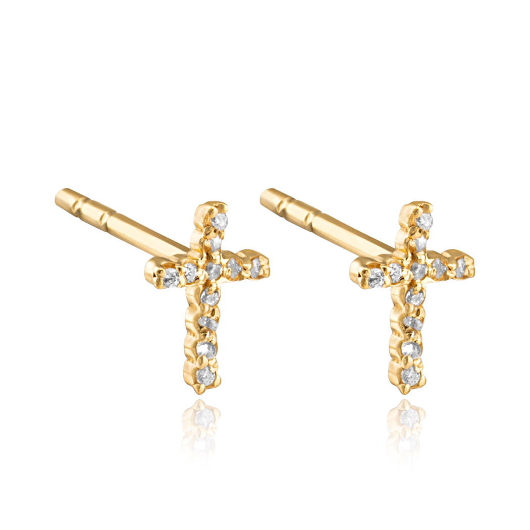 The Power Stud Earrings feature a radiant cross design that symbolizes strength and grace, bringing bold yet effortless energy to every look. Wear them solo for a clean, confident touch or mix & match with other pieces for that fearless stack. Handcrafted from 925 sterling silver with a 14k gold vermeil finish and set with sparkling cubic zirconia stones.