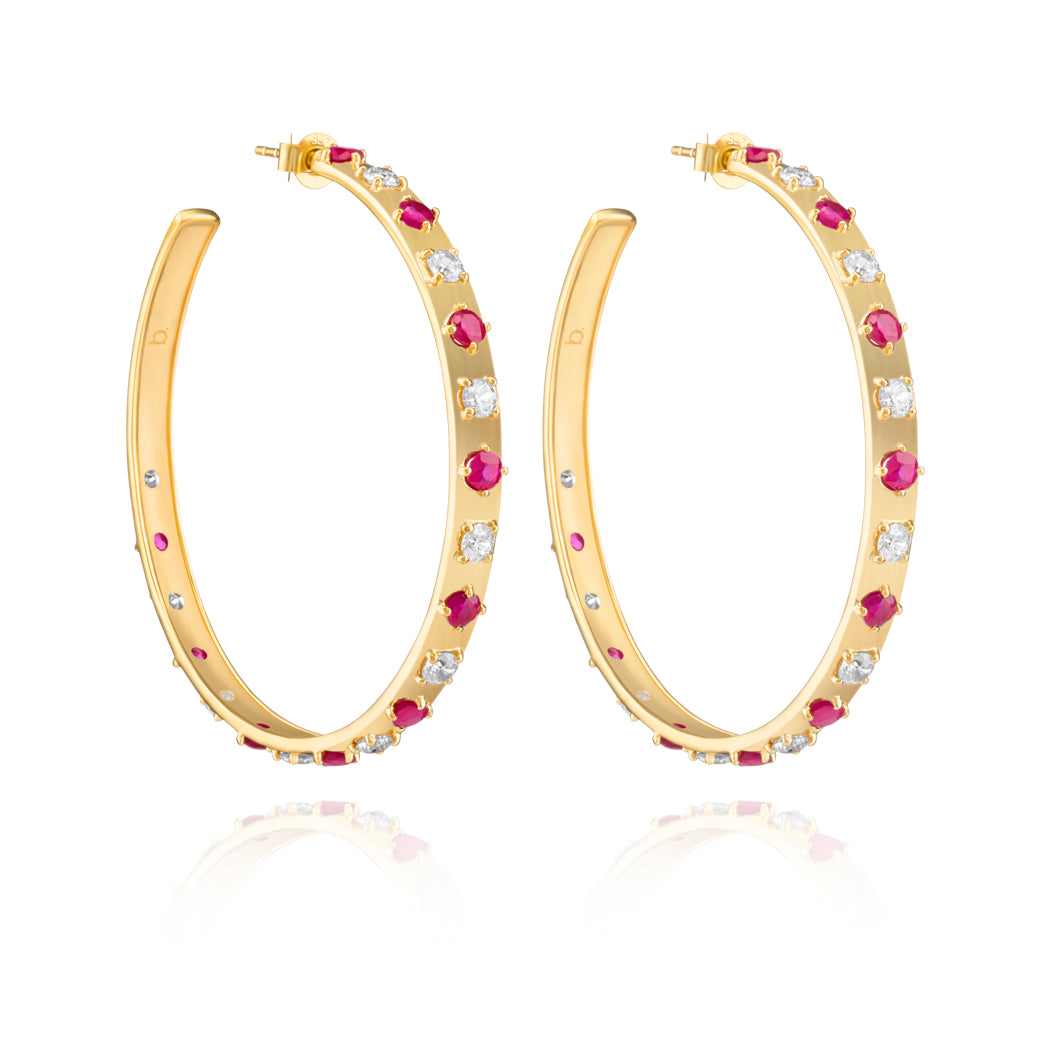 The Statement Hoop Earrings are true eye-catchers - bold, feminine, and full of fearless energy. Adorned with radiant pink and white cubic zirconia stones, they add instant glam to any look. Wear them to stand out with confidence, day or night. Crafted from 925 sterling silver and finished in 14k gold vermeil for a luxurious, lasting shine.